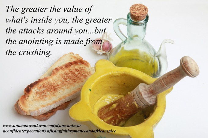 Just like you have to crack the egg to fry it, or squeeze the orange for the juice or crush the olive for the olive oil…you will also undergo some kind of pain but we are called to endure. Paul said it best when he said in 2 Corinthians 4 vs 8 & 9 We are pressed on every side by troubles, but we are not crushed. We are perplexed, but not driven to despair. We are hunted down, but never abandoned by God. We get knocked down, but we are not destroyed.