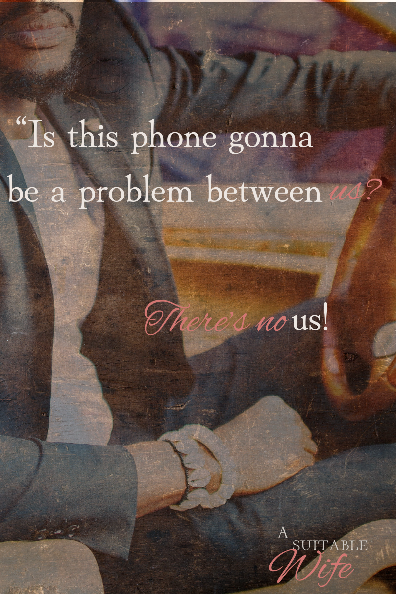 “Is this phone gonna be a problem between us?” I glanced at her just in time so see her raise her brow and tighten her nose in disdain. “Who is that anyway?”