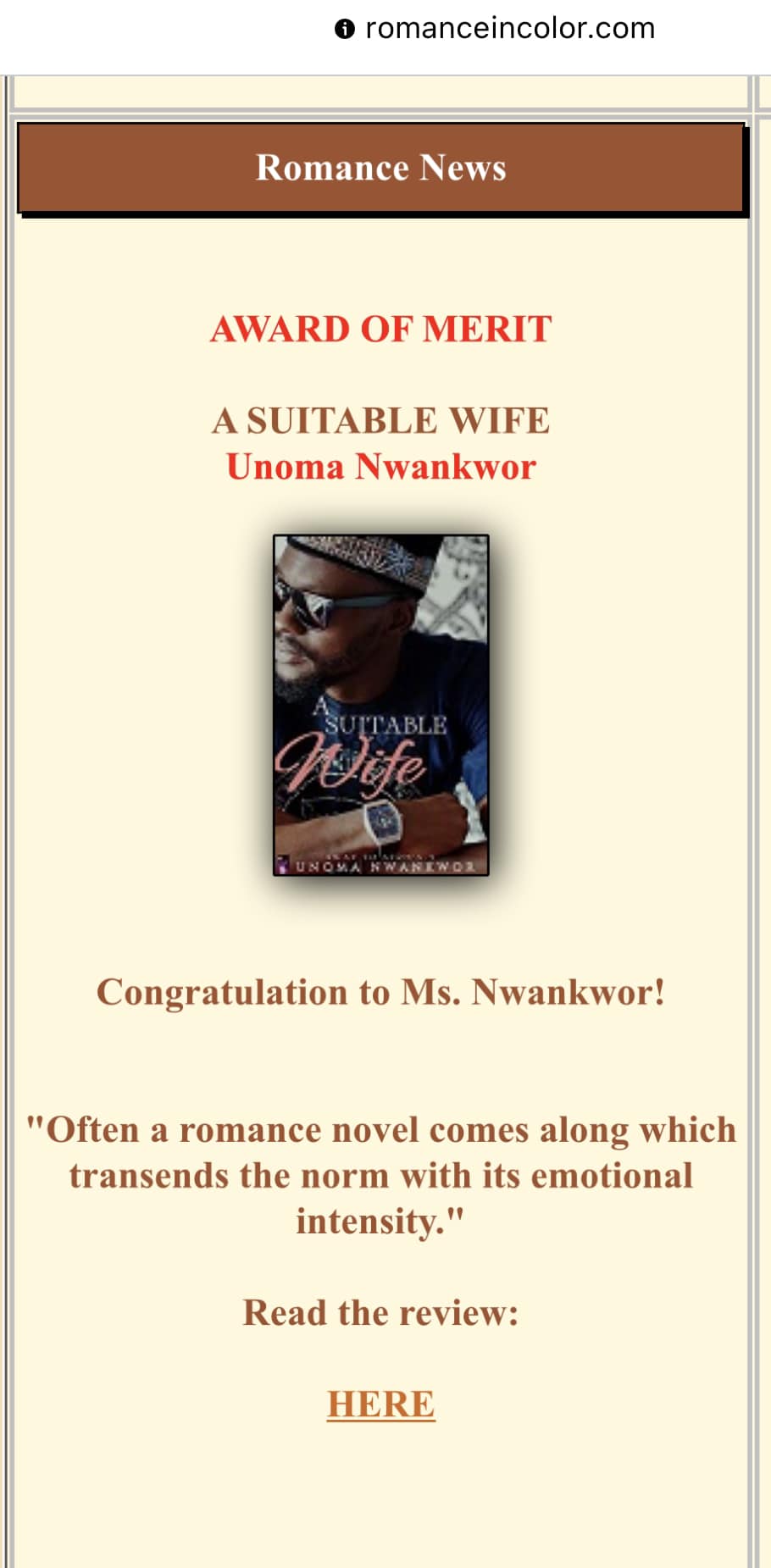 The Kalus have had such a wonderful reception. Jidenna & Zola are a hit…#1 new release in Black & African Christian Fiction, Bestseller & #1 new release in African literature and an Award of merit from Romance in color.