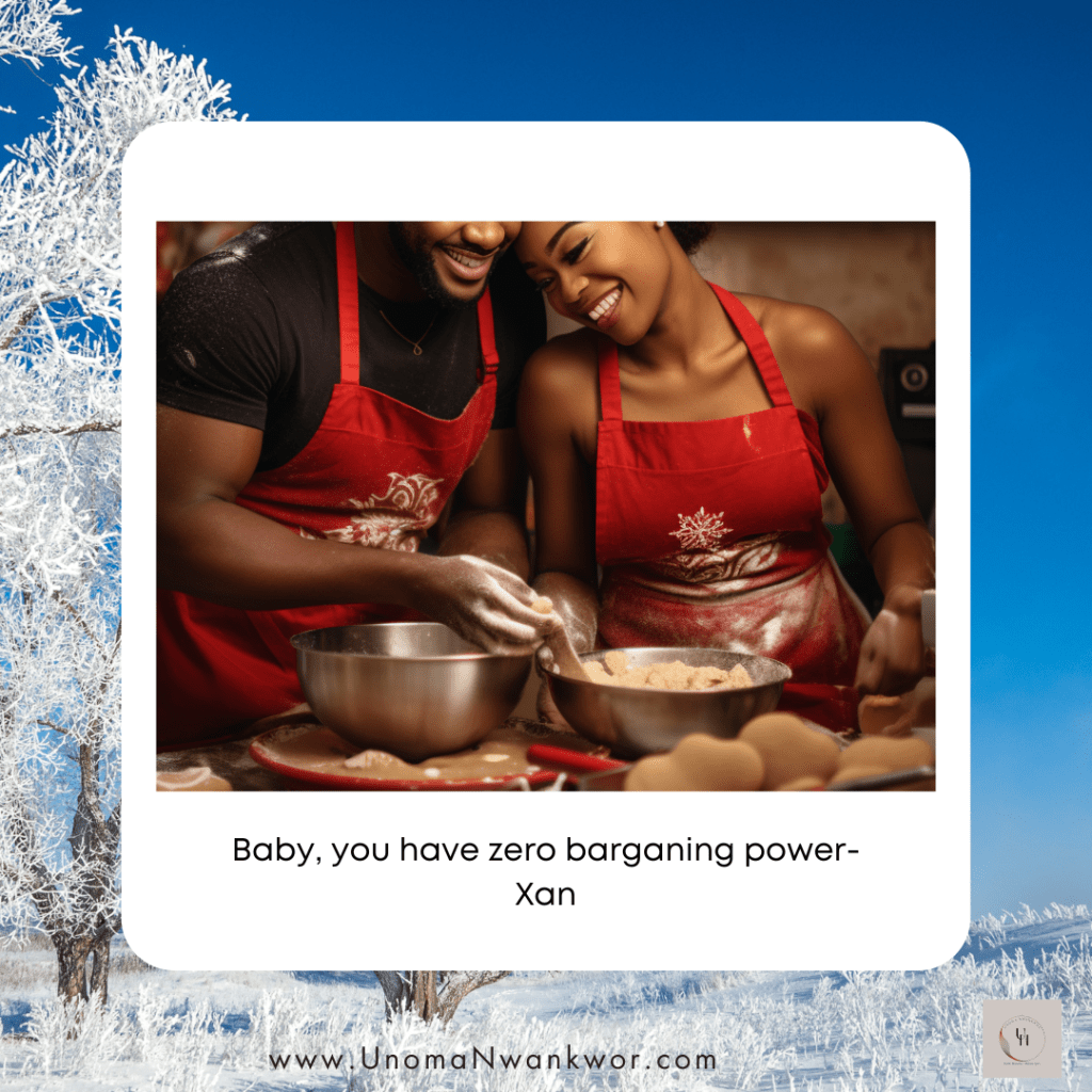 “Xan…stop. I told you I didn’t wanna get flour on me.”