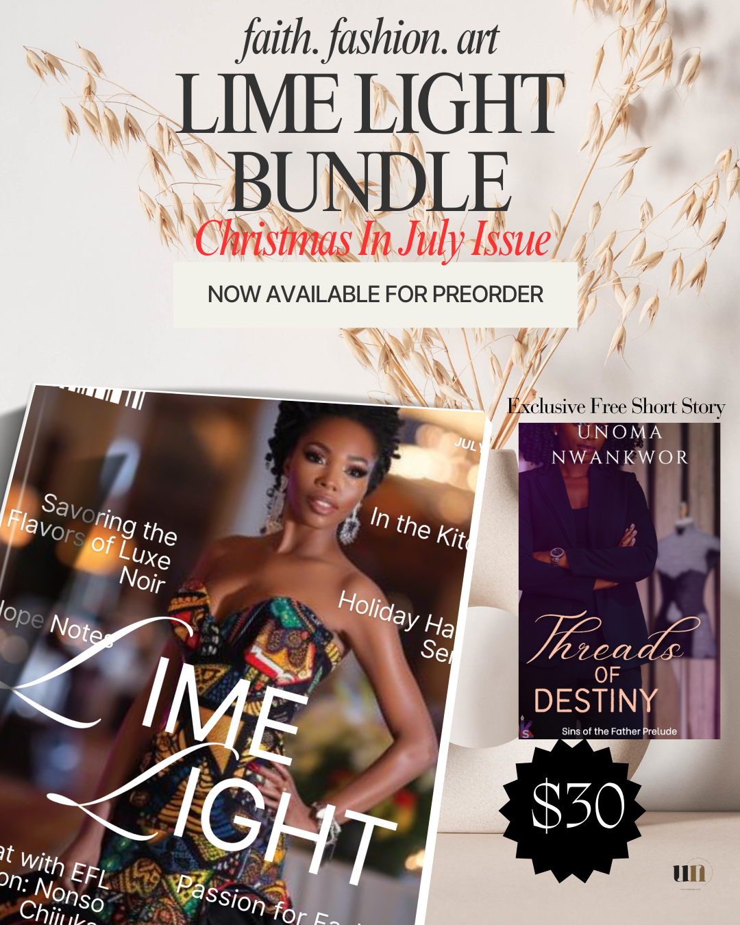 So just in time for Christmas in July, I have exclusive content for my loyal readers. Lime Lime Magazine bundle includes a 15K word story that is a prelude to a new series. If you’ve been around a while, you’ve met Qadir Adesina and are aware of Ziedu Fashions although nothing has been mention of who is behind the Fashion Empire.