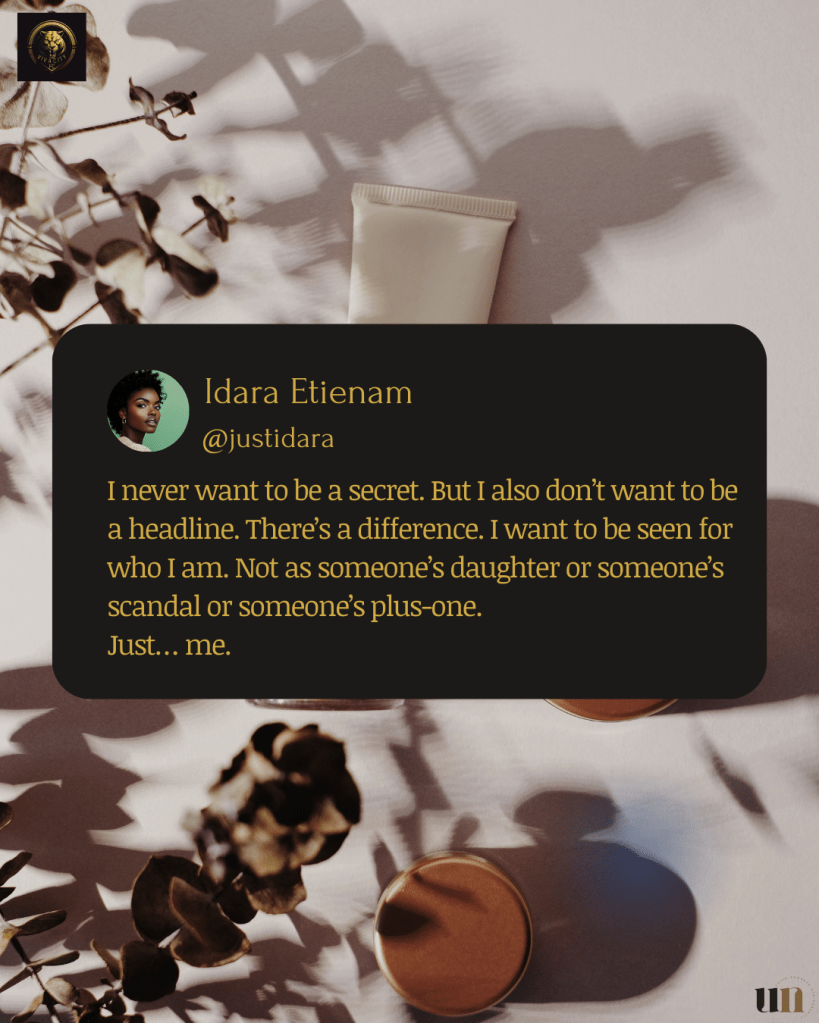 Idara’s story is for every woman who’s been seen but not understood. Who’s been admired, but not really known.