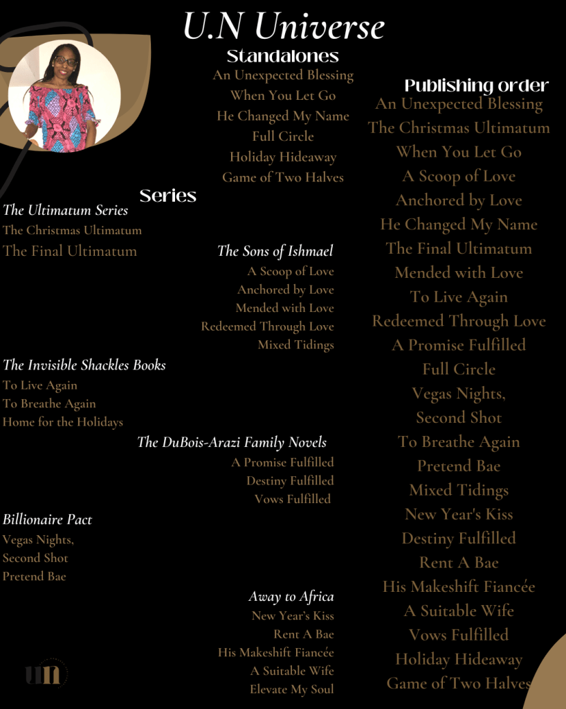 Each book in the U.N Universe is crafted to celebrate the richness of African life — exploring universal themes of faith, hope, and love through authentic characters and captivating settings.